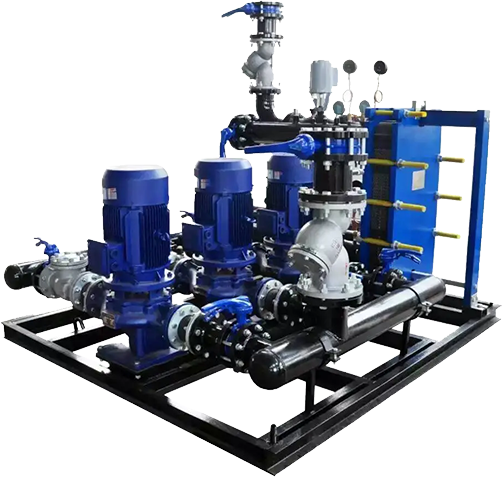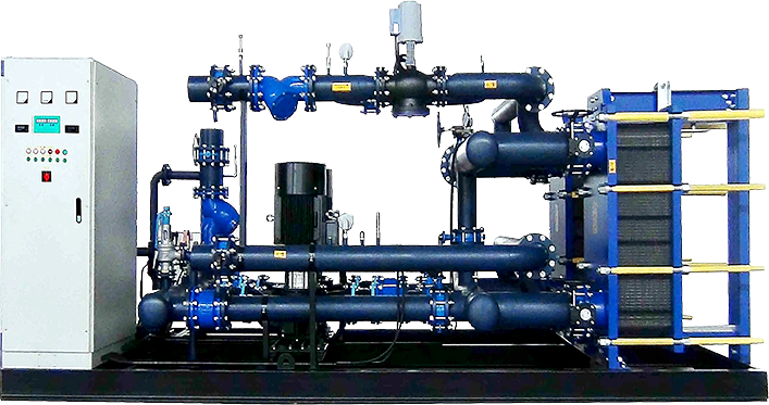 板式換熱機(jī)組,為換熱機(jī)組的一種型號(hào),其特點(diǎn)是采用板式換熱器,在相同壓力損失情況下,其傳熱系數(shù)比管式換熱器高3-5倍,占地面積為管式換熱器的三分之一,熱回收率可高達(dá)90%以上。